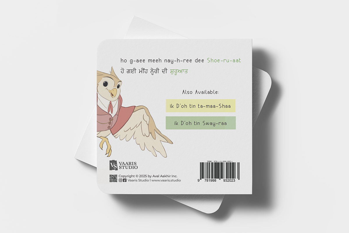In the vibrant world of children’s Panjabi literature, immerse yourself in this delightful tale as readers are introduced to birds who burst into a frenzy as the rain starts pattering and storm swirls in. Each bird turns a stormy moment into a light and giggly adventure, taking the reader along as they follow the whirl of a windy and rainy day. The story is crafted with vivid and colorful illustrations, that encourage the reader to count along with this captivating content.